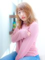 クセ毛のうねりを計算しながらカットし、クセ毛をいかしながら、ランダムにコテ巻き!! ナチュラルなクセ毛風の無造作ミディアムスタイルです!! カラーは【ミルキーベージュ】で柔らかいヘアスタイルがさらに柔らかく見えますよ!!