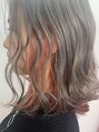 インナーカラーオレンジです♪表面の髪の毛はグレージュカラーで寒色系にして、中を暖色系の色味にすることでインナーカラーが映えますよ(^^)