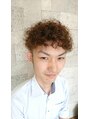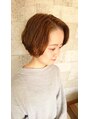 ショートボブにカットし、12レベルのベージュ系カラーに、ゆる巻きパーマをかけました。
