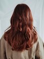 レッド系のカラーにゆるふわコテアレンジ