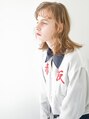 小洒落た、海外の田舎娘風ヘアー。カールのバランスはあえて顔まわりは強めに出し、バックにかけて緩く。シースルーのバングもしっかりカール感を。カラーはブロンドベージュ。柔らかさとナチュラル感が◎