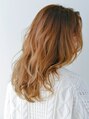 顔まわり、全体にレイヤーを入れ、頭の形に合わせてバランスよく見えるように毛先あたりに動きをつけてメリハリをつけたラフウェーブstyle。【気に入って頂いたスタイルは、ブックマークをしてご提示ください】