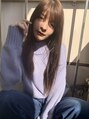 カラーで透明感たっぷりのベージュとカットでレイヤーをたすことによってストレートでも動きのあるスタイルを。