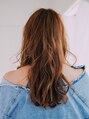 少し明るめのベージュカラーに全体セミウェットゆる巻き仕上げ