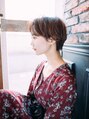 前上りになるようなカット。襟足はぎりぎりまで短く、前髪の長さはカールができるように残したスタイルになります。カラーはブリーチベースに透明のあるベージュベース。回数毛先2、3回。根本はリタッチ分1回です。