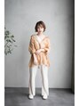 あごラインのボブにレイヤーを入れ、毛先の動きを出しひし形シルエットにすることでシャープな印象にします。カラーはクリアな透け感を出しながらも黄色くならない上品なベージュカラーで透明感のある淡い印象にし女子力アップです♪♪