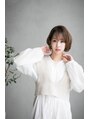 あごラインのボブにレイヤーを入れ、毛先の動きを出しひし形シルエットにすることでシャープな印象にします。カラーはクリアな透け感を出しながらも黄色くならない上品なベージュカラーで透明感のある淡い印象にし女子力アップです♪♪
