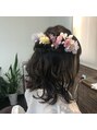 卒業式ハーフアップスタイル!!トップはくるりんぱでボリュームを出しサイドからロープ編みでまとめました!!飾りは花かんむりのようにつけ下は外内ミックスでゆるく仕上げました!!
