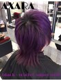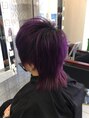 ブリーチ2回で作る【鬼滅カラー】です。根元はあえてブラックでバイオレットと馴染むようにしてあります。カットはスーパーウルフで大きめなピアスが似合うように耳たぶ見える長さで作りました。 海老名から可愛いいスタイル発信します!