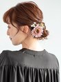 下目にゆるくまとめたルーズな編み込みダウンスタイル♪ 結婚式や二次会、パーティにもおすすめのオススメのヘアアレンジです♪ 仕上げに使用しているラフリジーオリジナルの花飾り( @soie_for_hair )は、サロン店頭や WEB SHOP でも販売してます♪