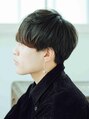 ナチュラルなショートマッシュスタイル。サイドも自然な感じに2ブロックにしてあります。カラーリングは全体にいれず、毛先に少し明るめの色をいれて躍動感が出るようにしました。