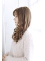 重めの前髪とAラインに広がるようなミックスカールは、大きなカール感でボリュームが出る女性に人気のスタイルです。