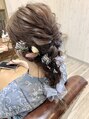 かすみ草などの可愛いお花をふんだんに散りばめた編みおろしスタイルです。チュールを使ってリボン風にしているのもポイント!ヘアアクセサリーとドレスだけ教えてくれて、あとはお任せでも素敵に仕上げてみせます(^-^)