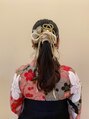 成人式・卒業式におすすめ!!金箔・紐アレンジ☆シンプルなポニーテールに髪飾りで見せるヘアアレンジ!個性派をねらうなら、ぜひ☆※髪飾り・紐・金箔はご持参ください。