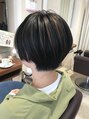 ブリーチ無しのカラー剤で作るハイライトショートに動きを付けて立体感を女の子らしい丸みのあるショートヘアに