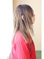 ストレートスタイルですバレイヤージュカラーでハイライトよりもしっかりとしたスジ感を!簡単にゆうとグラデーションカラーとハイライトをミックスしたような感じです!髪の根元をブルーブラックに毛先にプラチナシルバーで外国人風ヘアカラーの完成です☆