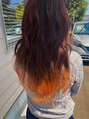 1ブリーチ後にビビットなオレンジをon★アメージングプレックスを配合した優しいブリーチなので、痛みも最小限で、ブリーチしたとは思えない手触りもgood(^^)