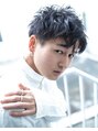 MIXに毛先を散らして動きを。アンニュイな前髪の「コンマバング」で格好いい雰囲気をプラス。