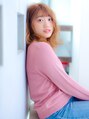 クセ毛のうねりを計算しながらカットし、クセ毛をいかしながら、ランダムにコテ巻き!! ナチュラルなクセ毛風の無造作ミディアムスタイルです!! カラーは【ミルキーベージュ】で柔らかいヘアスタイルがさらに柔らかく見えますよ!!