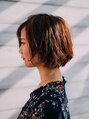 アゴラインにカットされたグラデーションボブスタイル★毛先に動きが出やすいように、ワンカールランダムにパーマをあてます!カラーは明るすぎないナチュラルなベージュ系で、洋服とのコーディネートもしやすく◎