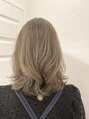 全体に細かくハイライトを入れ、柔らかなスモーキーベージュをオンカラー。毛先にかけて明るくなるようグラデーションに。
