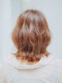 オレンジ味の強いカラーを肩につくくらいのミディアムにカットし、トップにボリュームを出すために少しレイヤーを入れたスタイル。【岡山】【表町】