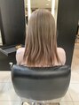 地毛は鎖骨下位の方、ミルクティにカラーし、インナーは薄ピンク全体はミルクティのエクステをつけています。本数は髪質により前後しますが写真の方で70本です。地毛が色落ちするので、明るめのエクステをグラデ風につけておくのが長く楽しめるポイントです!