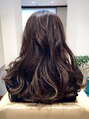 寒色系ブラウンにハイライトで動きを見せたロングスタイル。赤味の出やすい硬くて太い髪質の方も、寒色で赤味を消しハイライトで毛流れが見えるので、柔らかく見えます。