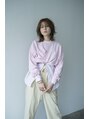 前下がりのグラデーションボブ。襟足は首に沿ってカット。トップにレイヤーを入れ、全体毛量調節。カラーは12レベルのシアーベージュでツヤ感と透け感をプラス。自然なカールで抜け感とヘアバターのスタイリングでこなれ感をプラス。