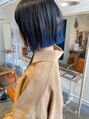 切りっぱなしボブ×裾カラーブルー全体はブラック、毛先のみブリーチをして少しネイビーをいれたブルーカラーにしました!ハイトーンやデザインカラー是非お任せ下さい!!Instagram→@kai_odm