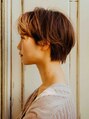 センターパートのマッシュショートです。丸いので幼くみえがちなマッシュスタイルですがセンターパートにすることによって肌がみえる縦幅が増えて大人っぽい雰囲気になります。マッシュにしたいけど大人っぽくみせたい方におすすめです。
