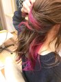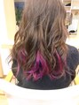 今回アップした写真はピンクと黄色とオレンジの三色にカラーしたものと、紫とピンクの二色にカラーしたものです。ベースカラーはパールベージュです。ダークブラウンだった髪に、二回ブリーチをして色をいれました。