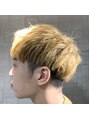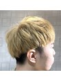 伸びきっていた髪を少し重ためマッシュにさせていただきました!ほぼ黒の毛から1回のブリーチでライトベージュカラーにさせていただきました。
