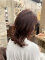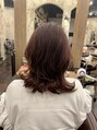 リアルサロンスタイルですレッドバイオレット系カラー毛先外ハネスタイルです