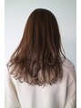 レイヤーをたっぷり入れて軽さを出したミディアムロングヘア。毛先をワンカールさせるだけでふんわりヘアに。カラーは春らしくほんのりオリーブを混ぜた柔らかなミルクティーカラー。