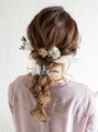 ゆるい動きの中にも艶っぽさを意識した編み下ろし。落ち着いた色味のプリザーブドフラワーを使用する事で大人っぽく仕上げました。