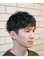 自然な感じの2ブロックにしてランダムな動きをパーマでつけたマッシュショートスタイル
