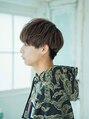 マッシュベースのバング長めのスタイルに、襟足は刈上げのメリハリスタイル!!バングは長めでも、トップにレイヤーを入れて動きのあるスタイルに!カラーはベージュ系の明るめのカラーリングに、襟足の刈上げているところはブラックにメリハリを出します。