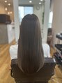 内巻きストレートのナチュラルレイヤースタイル。リラクシーなふんわりレイヤーでメリハリのある丸みシルエット。前下がりボブベース+ショートレイヤーで大人クールカジュアルに。ダメージレスなアッシュカラーで透明感のある外国人風カラー。静岡、藤枝