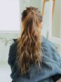 中間と毛先をしっかり巻いて、さりげなくおくれ毛をだしてあげれば縛っているようで縛っていないポニーテールの完成です。