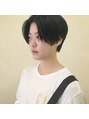 メンズライクなハンサムショート。ぱつっとしたカットラインにこだわりつつ、重たい印象にならないよう顔周りに束感を。カラーはブルーブラックでよりクールでかっこいい印象に。