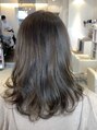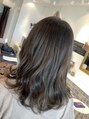 カットはローレイヤー。カラーは赤味を抑えたミントベージュ。嫌な緑味ではなく透明感のある透き通った上品な色味を表現。
