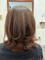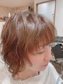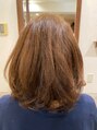 髪のエイジング化によりパサつき、チリつきが出てきてしまいまとまりが悪くなってきてしまってます。クセ毛を活かして表面にレイヤーを入れ、くびれを作ることで締まりをつくりました。軽やかさを出す為に少しだけ中間と毛先を毛量調整してあげて。