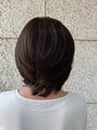 前下がりワンレングス。襟足ギリギリ短くカットして首長効果あり。髪質改善縮毛矯正で艶髪アップ。切りっぱなしでスタイリングも簡単。