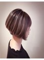逆毛をたてて薄く残った毛束をブリーチで染めていく手法。根元は暗めにカラーをしてグラデーションをつけました。髪が伸びても目立たないのが◎
