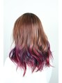 全体をブリーチで一旦トーンアップし、カラーバターで明るめブラウンから紫とピンクをランダムでグラデーションにしました!