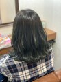 ハイライトカラー×ティントバーインディゴブルー☆ハイライトカラーにティントバーのインディゴブルーをON!ベースは暗めのブルージュに♪透明感抜群!褪色が楽しみなヘアに!