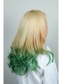 2回のブリーチでブロンドヘアを作り、毛先にグリーンを入れたグラデーションカラー!