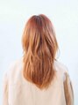 自然な動きを出したセミロングレイヤー。重たすぎない前髪とハイトーンのオレンジカラーが顔周りを明るく見せてくれるのでおすすめです。