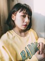 暗めカラーのパッツンボブです。アクセントでイヤリングカラーをしています。耳にかけた時にポイントになるようブリーチをして色を抜いてからオレンジベージュ系カラーを入れています。あまり派手にヘアカラーが出来ない方におすすめ。